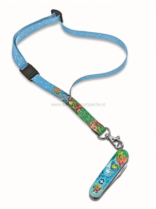 Deze set bestaat uit een kinderzakmes met dolfijn opdruk, nekkoordje en een kleurboekje.